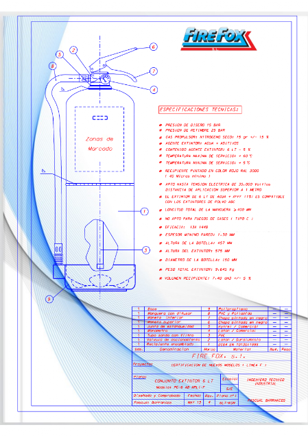 PESO MEDIO TOTAL EXTINTOR: 9,600 Kg +/- 5%