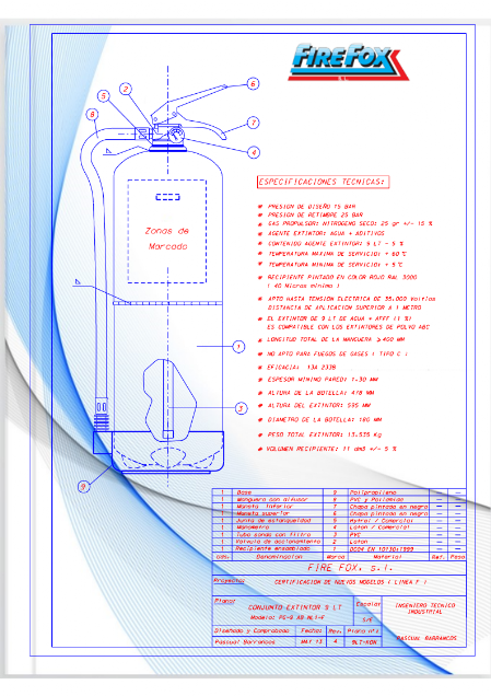 CONTENIDO AGENTE EXTINTOR: 9 LT - 5 %