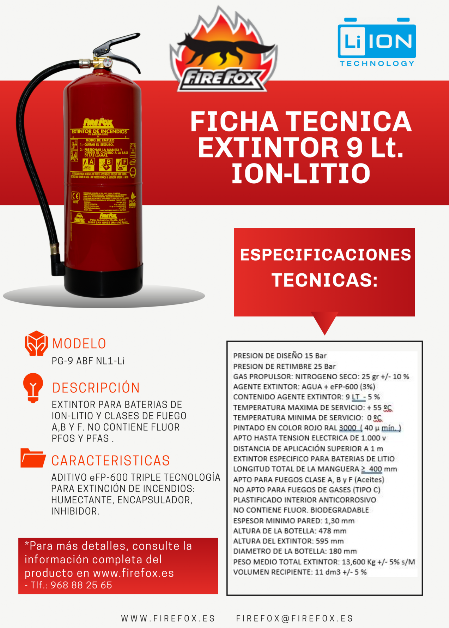 Extinción Litio PG-9 ABF NL1-Li - Extintores Fire fox S.L.
